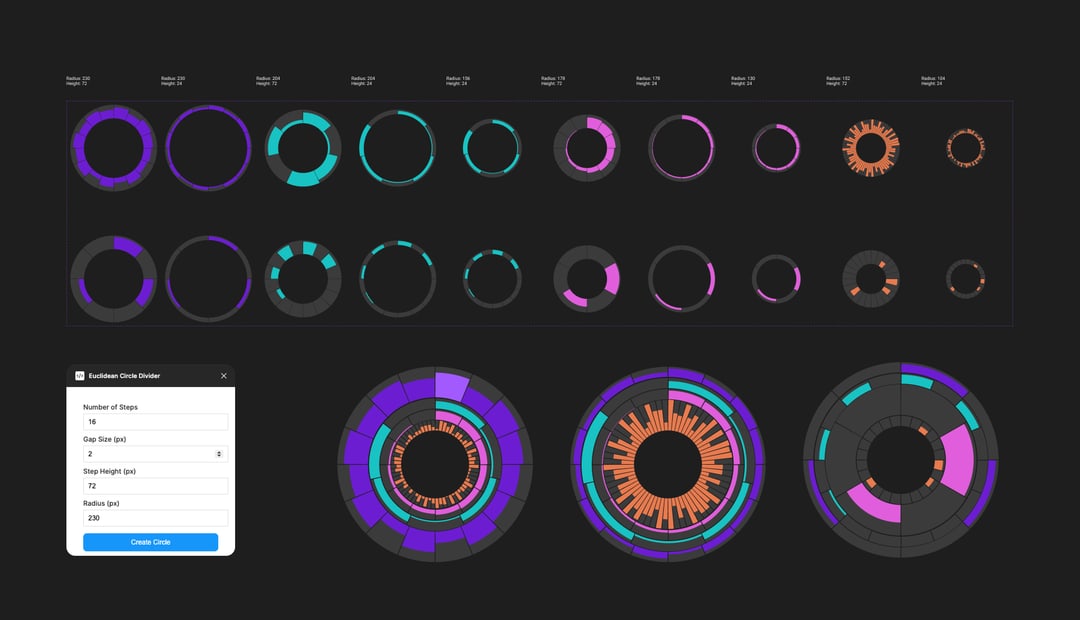 Built explicitly for the Circular instrument. Circular required a UI based on radial segments with specific step counts and gaps. This plugin automates the geometry, allowing us to prototype different step-sequencer layouts instantly without manually calculating angles.