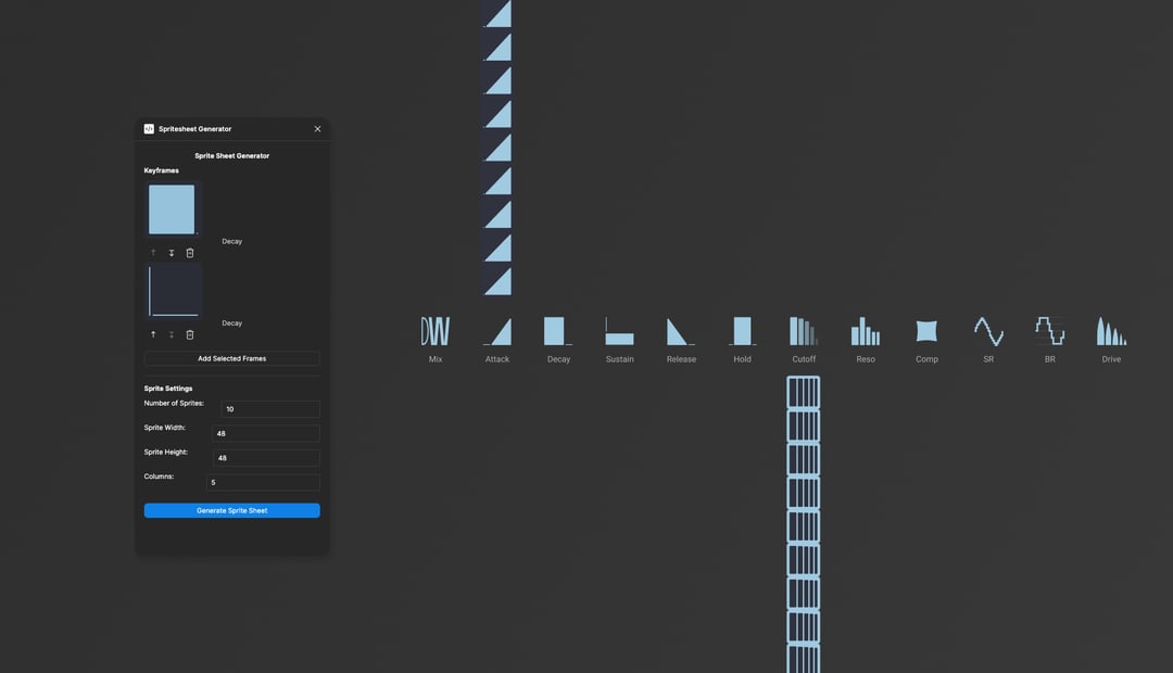 A bridge for legacy tech. Older audio engines (like Reaktor or older Kontakt builds) often rely on film-strip sprites for animation. This tool takes a set of keyframes, interpolates the movement between them, and exports a pixel-perfect sprite strip ready for the developers.