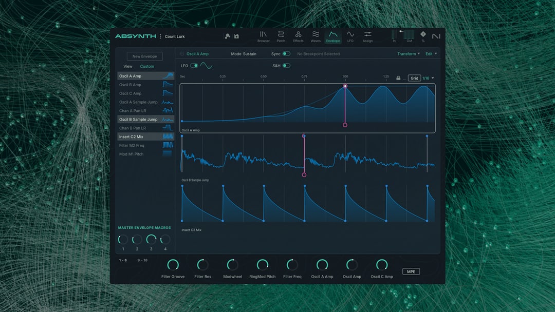 Absynth isn’t a “modern” synth. It has a deeply idiosyncratic architecture: a powerful mutator engine, extremely flexible envelopes with up to 68 breakpoints, and a modulation system that still does things competitors can’t.