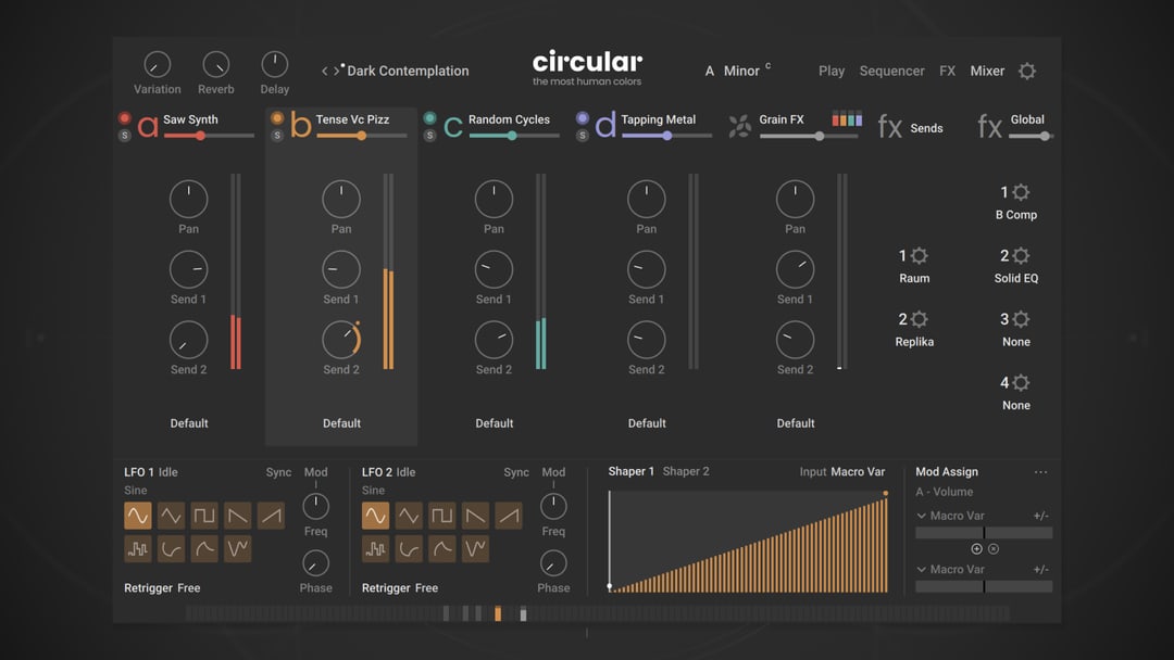 Circular is an expressive polyphonic sequencer created in close collaboration with Frank Elting, the mind behind Straylight and Pharlight.